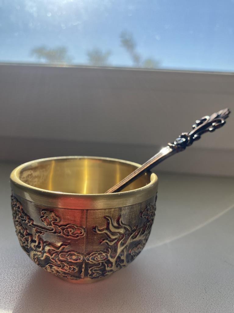 Antique Relief Dragon And Auspicious Slim Waist Cup Tea Table Decoration Copper Cup Chinese Small Waist Cup