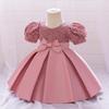 This enchanting party dress is designed to make any toddler or baby feel like royalty. Crafted from a soft cotton blend, it offers comfort and breathability for little ones on the move. The dress features shimmering sequins that add a touch of sparkle, while the puff sleeves provide an element of whimsy and elegance. Ideal for flower girls or special occasions, this dress ensures your child stands out with charm and grace.