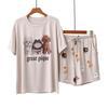 Pomeranian Cartoon Print Modal Pajama Set - Women's Summer Short-Sleeved, Lightweight, Loose Fit Shorts for Home