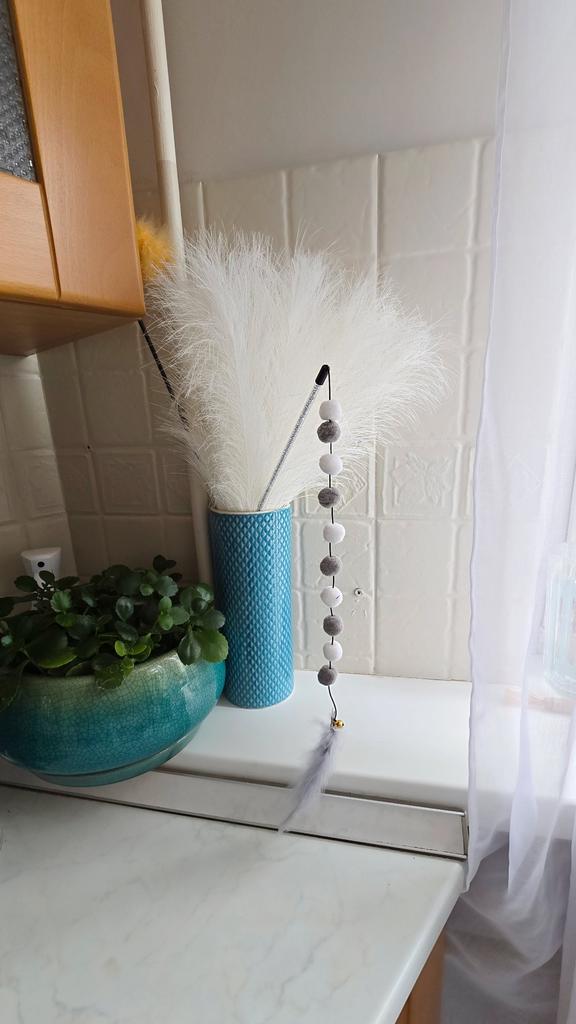 Cat Toys 1pcs Interactive Stick Feather Toys Kitten Teasing Durable Playing Plush Ball Pet Supplies Feather Cat Teasing Stick