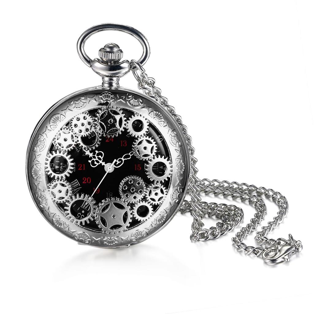 Pocket Watch Gear Skeleton Rome Analog Display Waterproof Pocket Watch Pendant Necklace Chain Birthday Anniversary Christmas Day Present Antique -