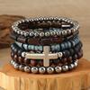 Cross Life Tree 5Pcs/set Vintage Bronze Ethnic Casual Wood Beads Feather Charm Leather Women Bracelets Men Male Jewelry
