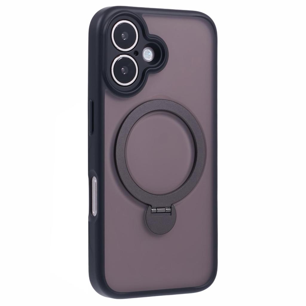 For iPhone 16 Case Compatible with MagSafe Matte TPU+PC Rotary Kickstand Phone Cover
