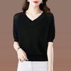 Summer Women Ice Silk Tops Women Casual Loose V-neck Thin T-shirts Short Sleeve Shirt Plus Size