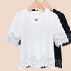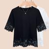 Women's Summer New Simple Everything Matching Slim Solid Color Design Sense Lace Crew Neck Patchwork Top