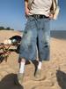 Men's American Retro Graffiti Oversized Denim Shorts - Trendy, Loose Fit, 7-Point Style for Summer