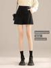 High Waist Women's PU Leather A-Line Shorts, Slim Wide-Leg, Black, Fall/Winter 2023, Korean Style, Perfect with Boots