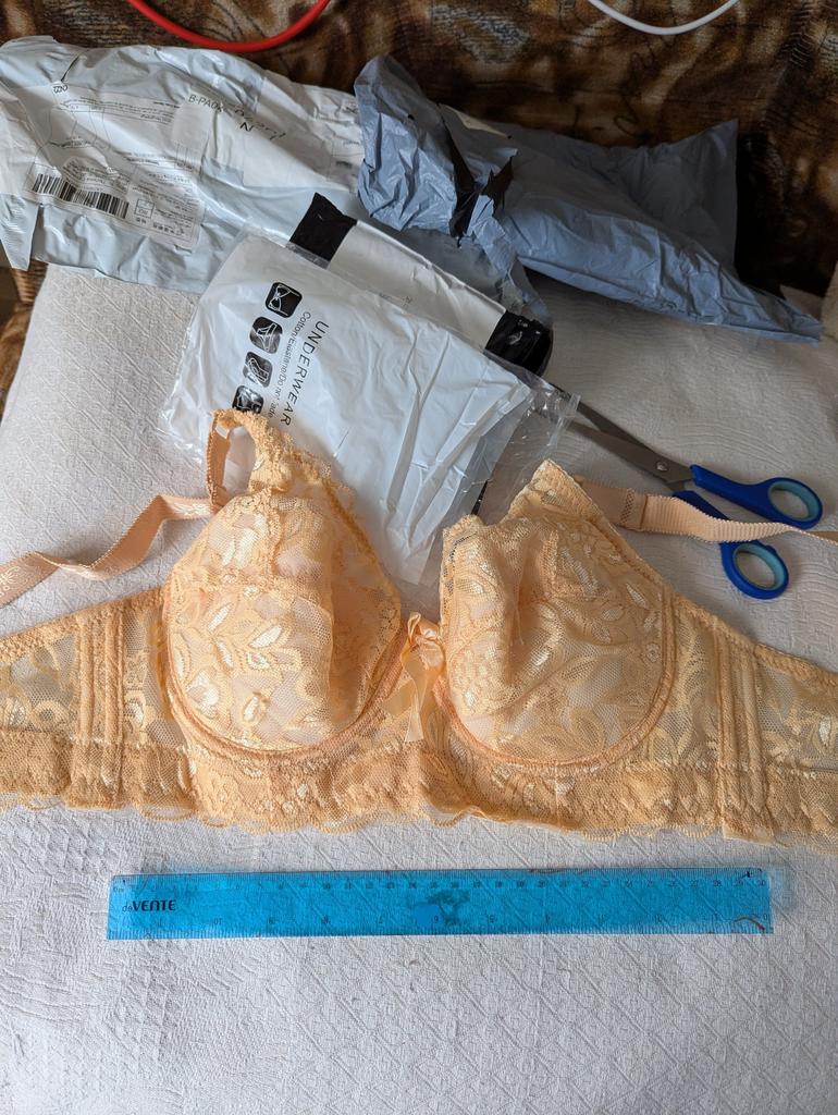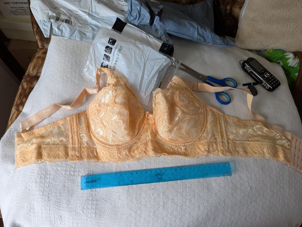 The size is small again. This is already the 3rd bra they send small, even though I specify a larger size. And in general, who sews them like that, the tits are pushed together, close to each other. Learn to sew larger sizes, you leave the patterns for the cups the same for all sizes, and only lengthen the volume, but the distance between the cups is the same, and the larger the size, the wider the cups should be from each other. How do you sew at all?