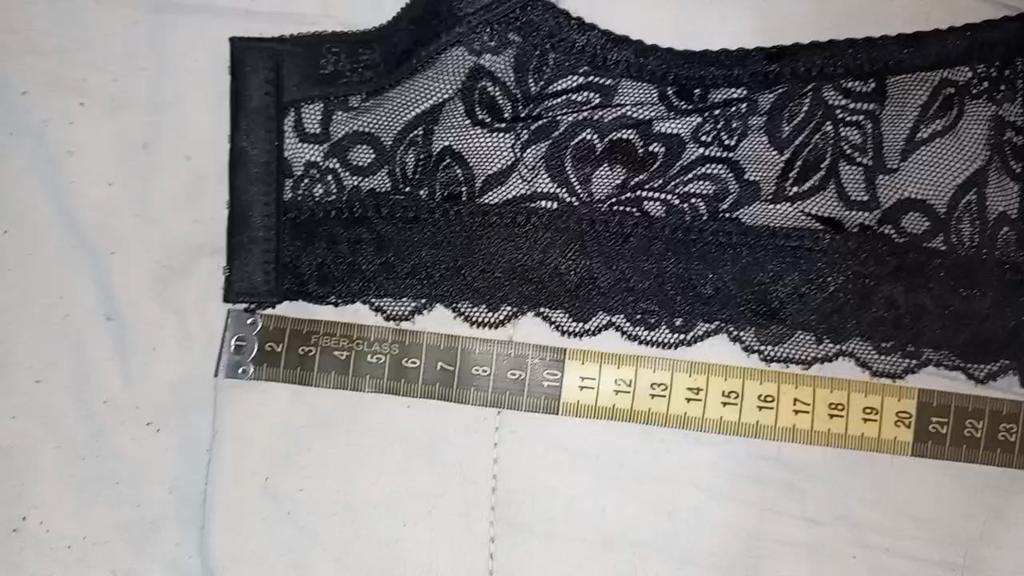 It fit for a chest volume of 92. Wide, strong elastic and beautiful lace. I recommend it. The cut pushes the breasts together, creating cleavage.