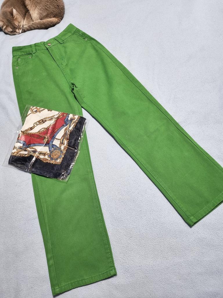 Elegant Wide-Leg Green Plus Size Denim Jeans for Women Loose High-Waisted Green Pants