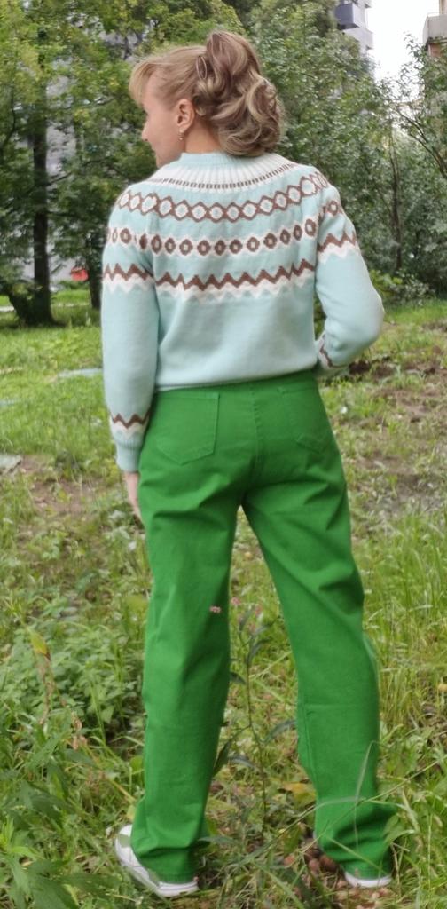 Not like the picture. It's a regular green forest. Thin material, only for summer. A bit big and long, but that's not a problem.