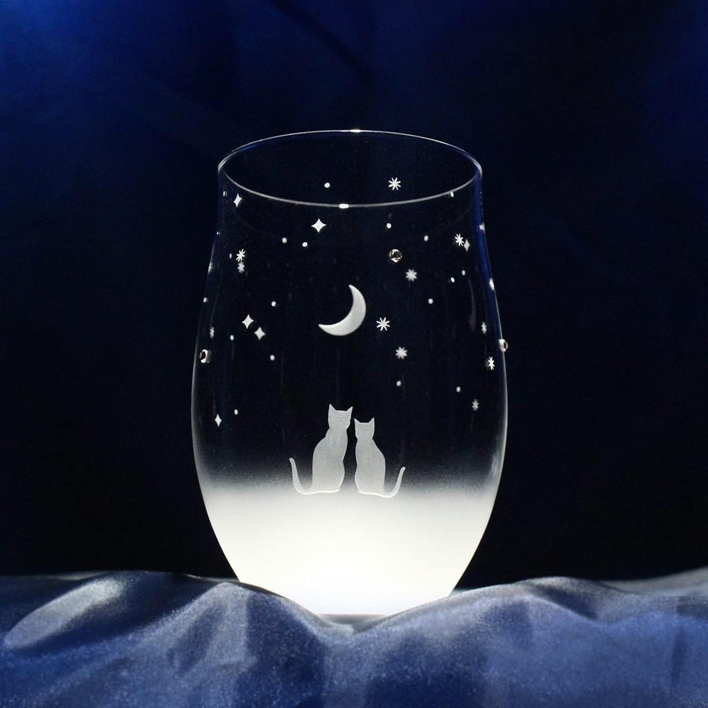 Atelier Keith Cat Motif Glass Sky with Crescent Moon Seen (Night Together)