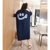 Korean Women's Loose Fit Smiley Face Mid-Length T-Shirt Dress