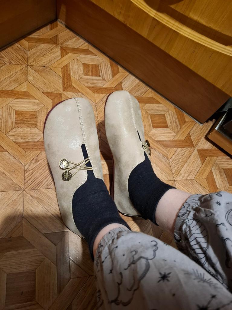 The shoes are exactly size 42, feet 26 cm, but they look like “coffin shoes”, I won’t wear them, it’s an unpleasant feeling.