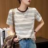 Mid-length Loose Retro Rainbow Striped Short-sleeved T-shirt for Women's Summer New Lazy Top