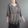 Shirt Tops Women Cotton Blouse Oversized Comfortable Embroidery Long Sleeve Hollow Shirt V-Neck Lace Shirt Tops