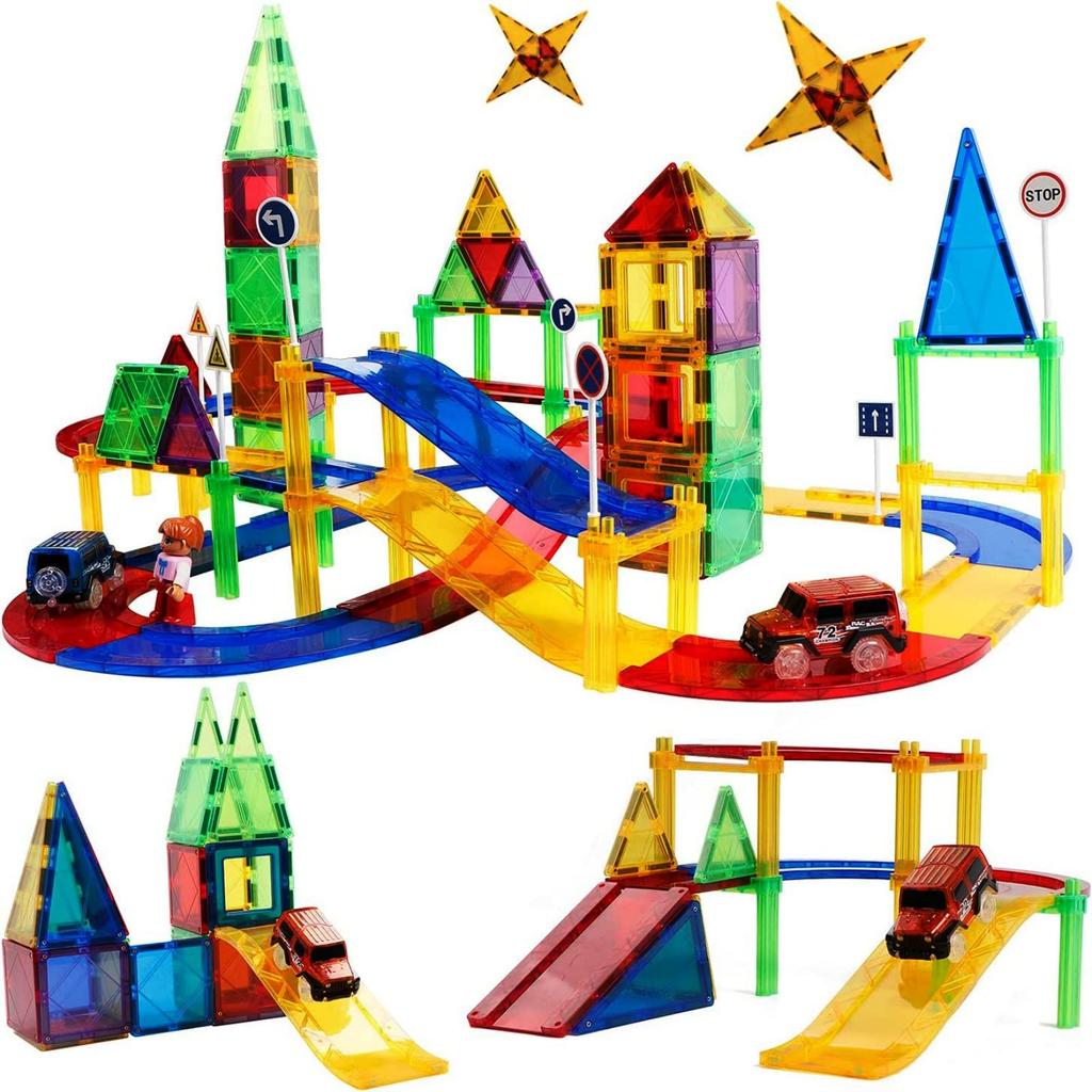MAGBLOCK 82 Piece Magnetic Block Car Rail Set Car Panel Slope Magnetic Block Educational Toy Children Boys Girls Birthday Present Christmas Gift