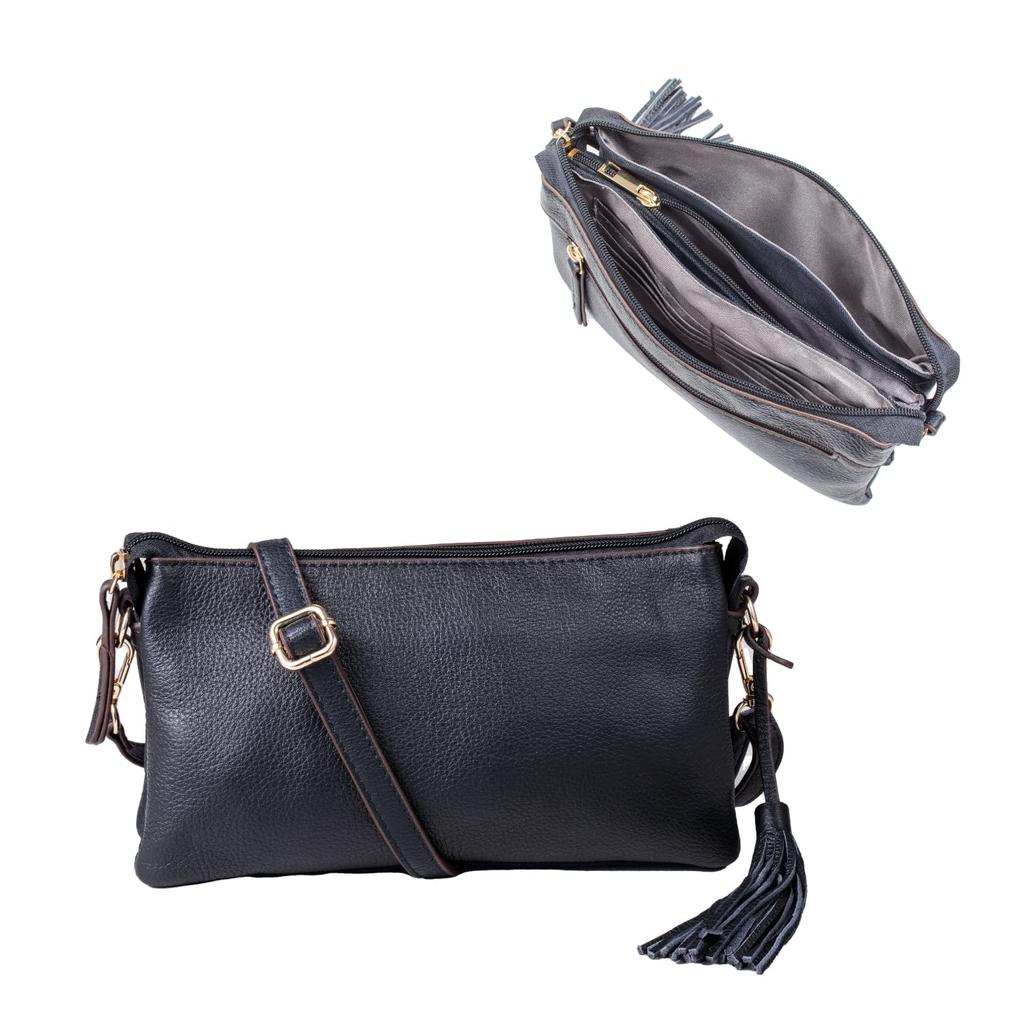 A shoulder bag made of cowhide (the leopard pattern is cowhide leather). It's a three-layered bag with a card pocket, so it can also be used as a shoulder bag when traveling. Lightweight at 260g, making it easy to carry around! We also recommend using the clutch. Made of soft cowhide leather, it is soft and easy to use. It is also sized to fit a regular long wallet. QUAY series Product number: 99366 External dimensions: Height 13cm x Width 25cm (opening), 24cm (bottom) x Depth 6cm Weight: Approx. 310g (including shoulder), Approx. 260g (without shoulder) Shoulder belt: Adjustable from approx. 131cm to approx. 74cm (width: approx. 1.5cm) Buckle Main opening: Zipper Outer material: 60% cowhide, 30% nylon, 10% synthetic leather. Only the leopard print is made of cowhide leather. Lining: Polyester Inner pocket: Zipper x 1, Card x 10 Outer pocket: Zipper x 1 Color: Black, Rose, Camel, Taupe, Ivory, Brown Leopard, Gray Leopard, Gold, Silver, Beige, Coral Country of Manufacture: China *All sizes listed are approximate. *Color may fade due to friction, sweat, rain, etc.