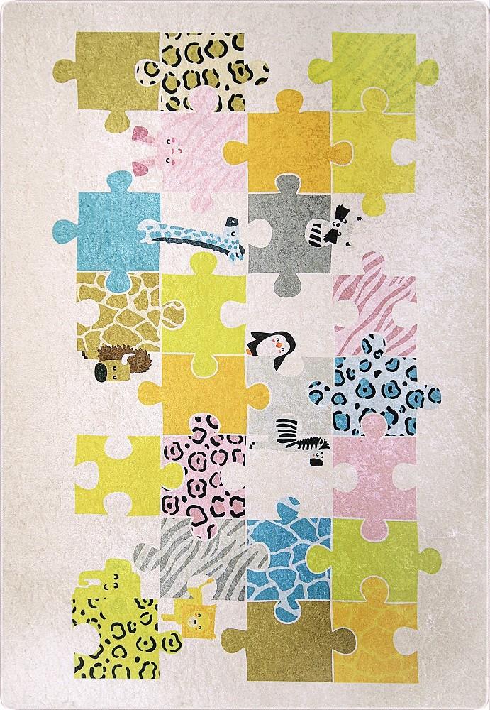 Children's Bedroom Rug 100x150 Cm Polyester Puzzle Beige