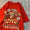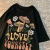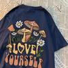 Cottagecore Style Mushroom Love Yourself Mens Tshirt Oversized T-Shirts Oversized Cotton T Shirts Breathable Women Short Sleeve