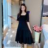 Spring Summer Chiffon Women Dresses Female Short Sleeve Elastic Waist Printed Floral Midi Dress Pleated Backless Casual Dress
