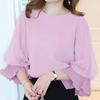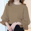 ZANZEA Women Spring Round Neck Lantern 3/4 Sleeve Mesh Pleated Blouses