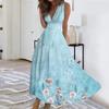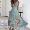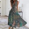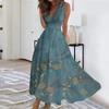 Women's Summer Fashion Print V-Neck Sleeveless Waist Tie Dress