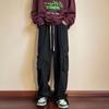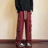 Men's Autumn Red Hip-Hop Wide Leg Overalls - Trendy, Loose, Casual Straight Pants.