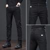 Experience the perfect blend of comfort and style with these men's black elastic jeans, designed for the cooler seasons of autumn and winter. Made from high-quality cotton, these straight-leg pants offer a comfortable fit while maintaining a sleek, fashionable look. Ideal for various occasions, they are the perfect addition to any wardrobe, ensuring you stay warm and stylish throughout the colder months.