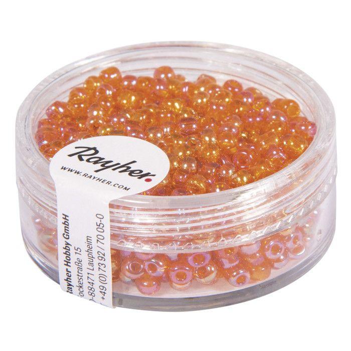 Seed Beads, 2.6mm Ø, Transparent, Glossy, Orange, 17g Box