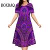 Retro Floral Print Women's Summer Round Neck Short Sleeved Loose Mini Dress Casual Women's Retro Plus Size Dress Women
