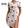 Indulge in luxurious comfort with our high-quality cotton blend nightdress. Crafted for ultimate softness, this nightgown boasts a silk-like luster and smooth feel that will have you drifting off to dreamland in no time. The summer short-sleeved design features a slit for a touch of allure, adorned with a charming love print.