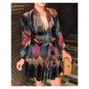 Summer New Women's Long Sleeve V-Neck Tied Fashionable Sexy Printed Dress