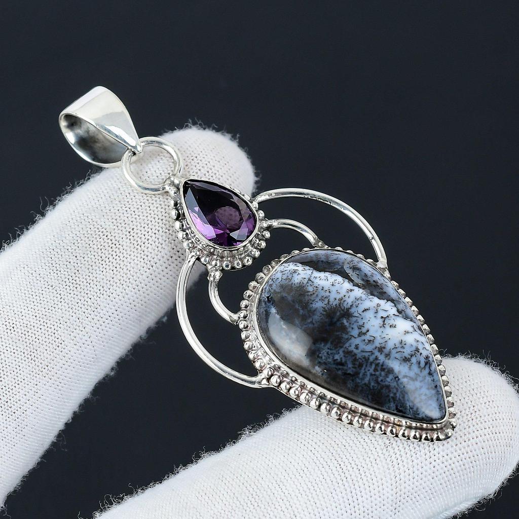 Natural Dendrite Opal Gemstone Silver Pendant In 925 Sterling Silver- Handmade Design, Everyday Wear Jewelry, Unique Amethyst Pendant Gift