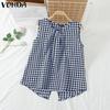 VONDA Summer Women Sleeveless Plaid Print Irregular Tank Tops T-shirts
