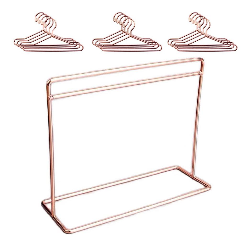 Mini Doll Hanger with 12 Hangers BJD Doll Hanger Rack Miniature Hanger Set Mini Toy Dress Up Doll Clothes Clothes Rack 1/7 (Rose Gold)