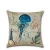 Sea Turtle Nautical Mermaid Pattern Cotton Linen Throw Pillow Cushion Cover Car Home Decoration Sofa Decorative Pillowcase 40018