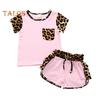 2Pcs Leopard Print Outfit for Baby Girl Summer Short Sleeve Pocket Round Neck Top Shorts Cute Sisters Matching Suit for Daily Wear Photography Parties