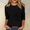 VEZFAA Women's Fashion Casual Summer Spring Solid Color Print 3/4 Sleeves O-Neck Blouses & Shirts