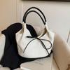 Niche Vintage Black and White Patchwork Canvas Tote Large Capacity Multifunctional Commuter Tote