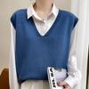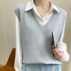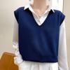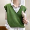 VEZFAA Women's Fashion Casual Fall Winter Solid Color Print Sleeveless V-Neck Sweaters