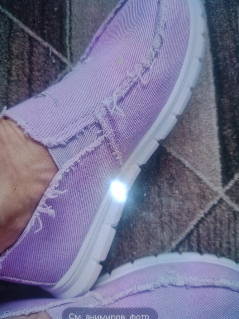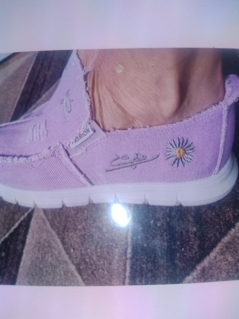 Slip-ons for a wide foot, fit perfectly by the insole (size 39), but in width, even in the photo it is visible that they are a bit wide, although the feet are swollen after work. There is a slight smell. In principle, the color is as in the photo. Thank you for the gift