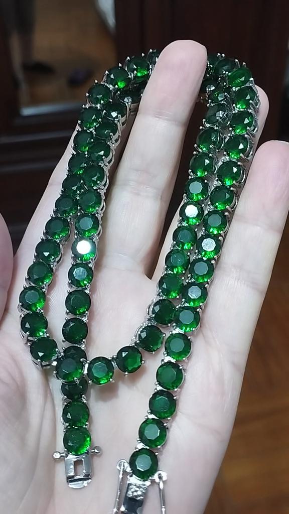 7mm Emerald Zircon Cuban Necklace Tennis Chain Hip-Hop Jewelry