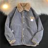Men's Corduroy Cotton Jacket with Lamb Wool, Harajuku Hip-Hop Style for Autumn and Winter.