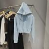 Shisanhang Women's Korean-Style Autumn Hooded Double-Zip Cardigan Sweater Jacket