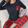 Women's European & American Plaid Pajama Set - Long-Sleeve Top & Trousers for Autumn/Winter