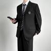 Unisex College Style Single-Breasted Black Jacket with Badge for Spring/Autumn