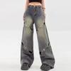 Women's Retro Wide-Leg Distressed Jeans, Spring Street-Style, Loose Fit, Floor-Length Trousers.