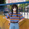 Summer Casual Loose T Shirt Women's Streetwear Harajuku Rainbow Stripes Short Sleeve T-shirts for Women Y2k Tops Vintage Clothes
