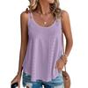 VEZFAA Women's Fashion Casual Summer Spring Solid Color Print Sleeveless U-Neck Blouses & Shirts